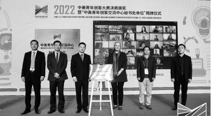 11月9日, 2022中美青年创客大赛决赛颁奖暨“中美青年创客交流中心秘书处单位”揭牌仪式在北京中华世纪坛举行,活动现场举行了教育部中美青年创客交流中心秘书处单位揭牌仪式,教育部国际合作与交流司副司长陈大立先生和美国驻华大使馆公使衔参赞马文茵女士共同为澳门银河官网 授牌。