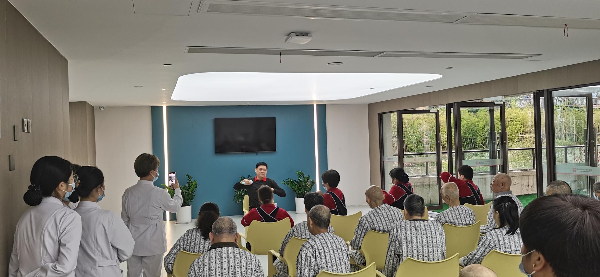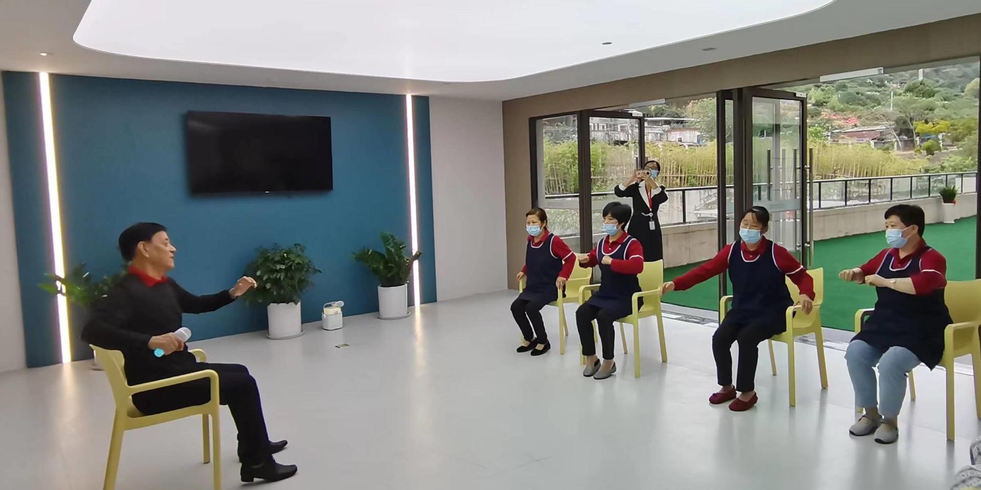 “适当上肢运动对老人身体康复很有帮助。老人们的理解和运动能力有限,我先教你们,你们平时有空就可以帮助老人进行锻炼。”杨津森说。