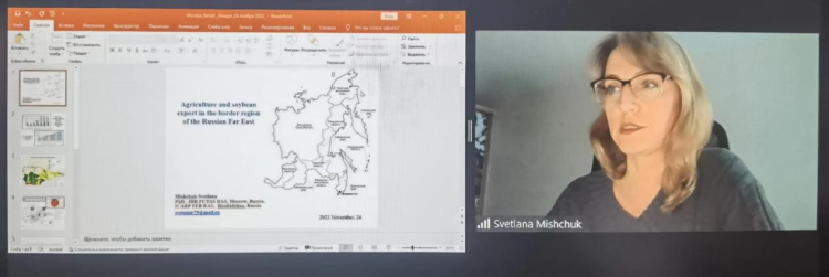 俄罗斯科学院社会学研究中心首席研究员米舒克C.N.研究了《俄罗斯远东边境地区的农业和大豆出口》问题。她认为,农产品对于任何一个国家来说都具有战略意义,对于国家安全来说至关重要。在苏联时期和俄罗斯时期,大豆出口在中俄边境地区的贸易结构中占比情况迥异。