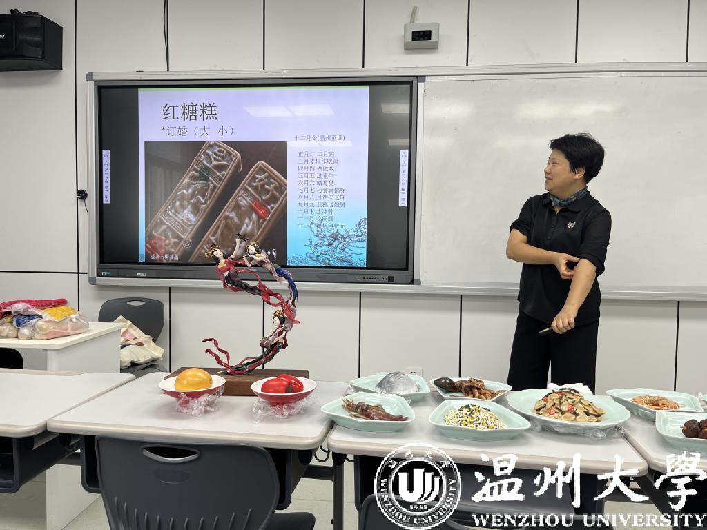 “九月九,登糕送娘舅。九月九吃要登糕,这是我们乐清人的民俗乐事。”在“手造温州”课堂上,乐清米塑工艺传承人郑小红老师十分风趣幽默地讲述了“红糖糕”和“白年糕”的民俗趣事和在四时八节、结婚礼俗中的造型特点。美味触动味蕾,郑老师还与同学们分享了她带来的自家手工红糖糕。