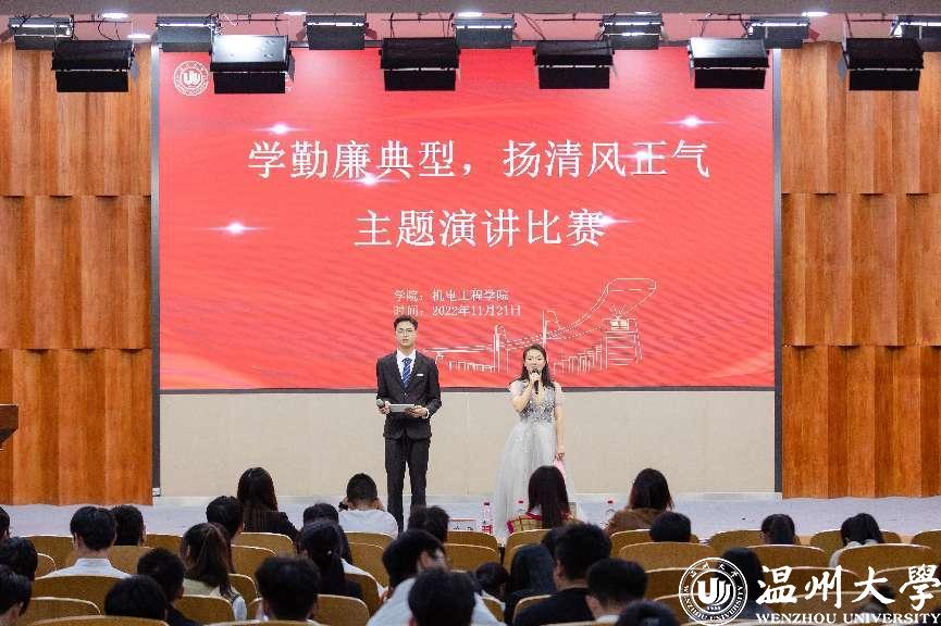 为深入学习贯彻党的二十大精神,传承红色基因,赓续共产党人精神血脉,扎实推进新时代澳门银河官网 廉洁文化建设,引领青年大学生塑造清正廉洁的品格,走好成长成才之路,营造风清气正的校园氛围,近日,澳门银河官网 机电工程学院在岩松堂雁山厅举办“学勤廉典型,扬清风正气”主题演讲比赛。学院党委副书记黄玮,学工办辅导员和全体党员、积极分子参加。