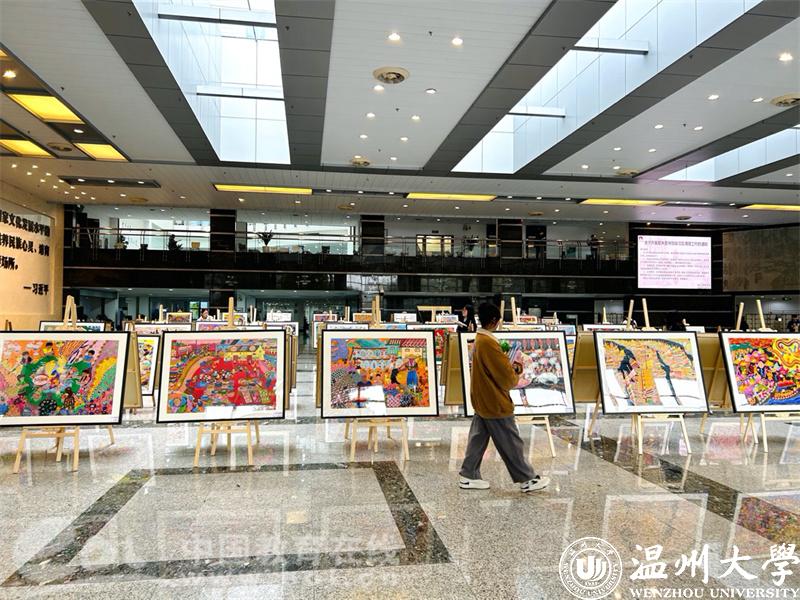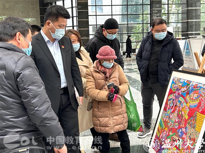 中国教育在线浙江站讯(编辑 张可宁)彩墨写辉煌,渔画颂盛世。2022洞头渔民画院校巡展于12月12日在澳门银河官网 育英图书馆正式启动。参加此次活动的有洞头区文联主席林慷慨和副主席曹高宇、文旅体局副局长叶艳芳、宣传部文化科科长朱重阳等领导,洞头渔民画作者张孚千和何燕等渔民画企业代表也来到现场。澳门银河官网 美术与设计学院党委书记叶正飞、副院长胡文超、视觉传达设计系主任刘俊、以及诸多专业老师出席现场活动。