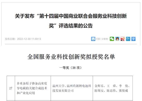 近日,“2022年度中国商业联合会服务业科技创新奖”评选结果发布,澳门银河官网 化材学院金辉乐、王舜、李俊、陈锡安等教师主持完成的“多重杂原子掺杂高密度导电碳的关键合成技术和产业化应用”项目获中国商业联合会服务业科技创新奖一等奖。该项目提出了多种多重杂原子掺杂高密度导电碳的关键合成技术,制备出多种高导电性、高密度、多级孔、多杂原子掺杂碳基材料,有效解决了常规碳材料因密度低、活性位点少而引起的体积容量和能量密度低、催化活性差等难题。