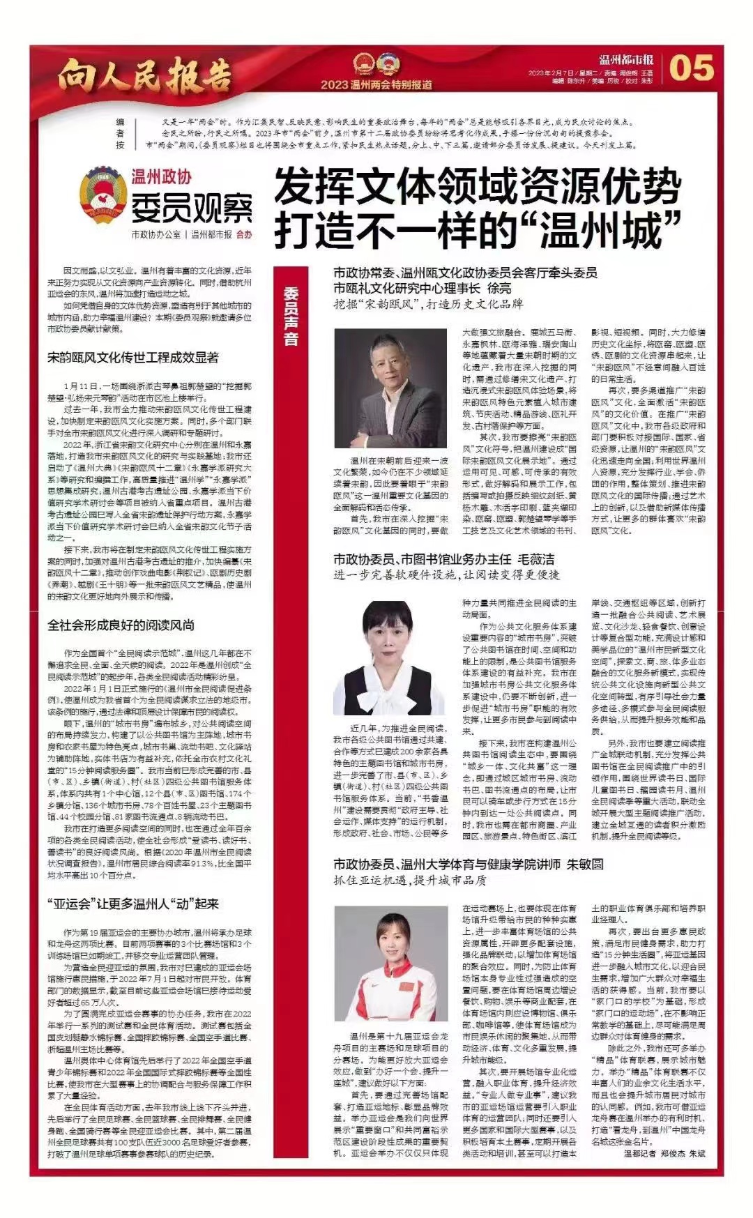 市政协委员、澳门银河官网 体育与健康学院朱敏圆:抓住亚运机遇,提升城市品质