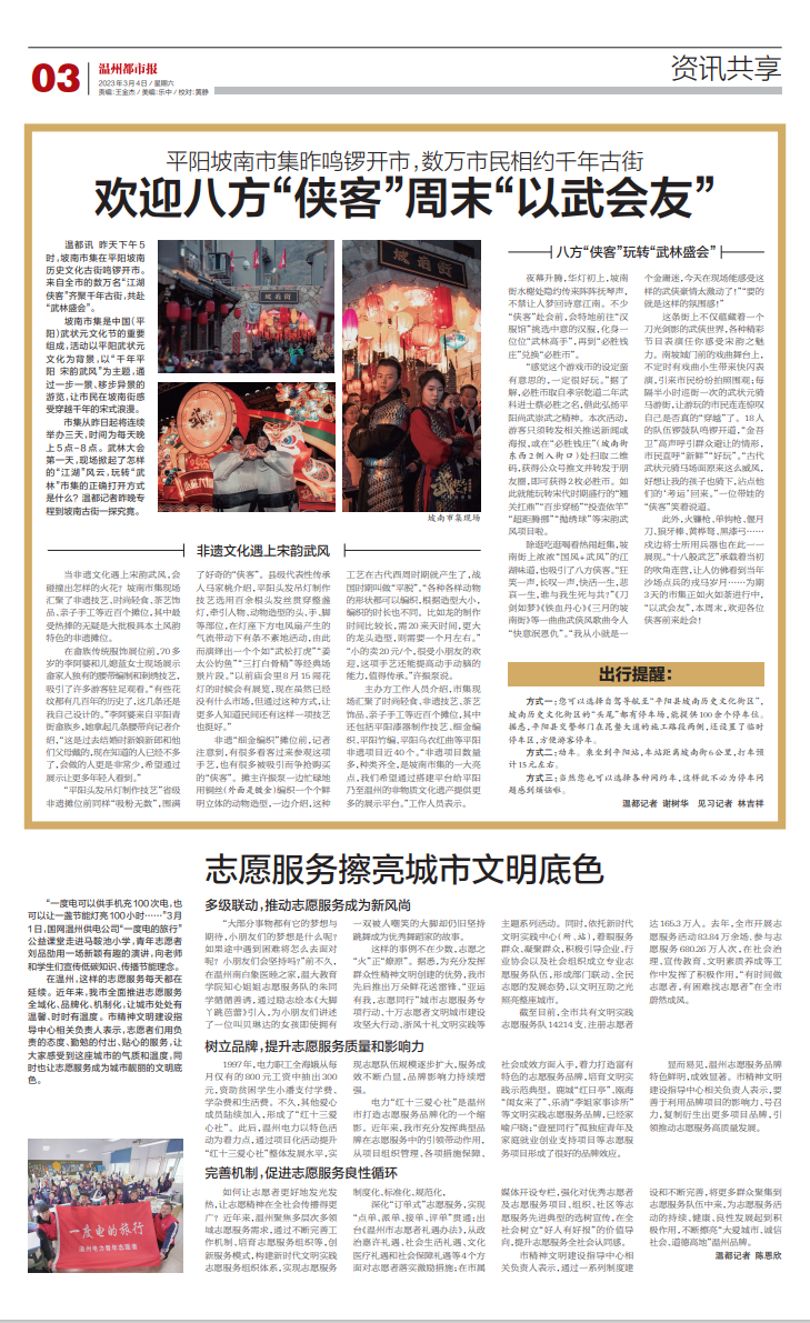 在温州,这样的志愿服务每天都在延续。近年来,我市全面推进志愿服务全域化、品牌化、机制化,让城市处处有温馨、时时有温度。市精神文明建设指导中心相关负责人表示,志愿者们用负责的态度、勤勉的付出、贴心的服务,让大家感受到这座城市的气质和温度,同时也让志愿服务成为城市靓丽的文明底色。