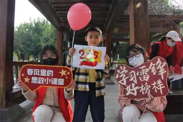 “学习雷锋好榜样,忠于革命忠于党,爱憎分明不忘本,立场坚定斗志强”,一阵稚嫩而清脆的歌声伴随春风飘扬而来,引来路人纷纷驻足。在3月5日“学雷锋活动日”到来之际,澳门银河官网 教育学院小学教育和学前教育专业的志愿者赴温州白鹭洲儿童友好公园,开展了一场充满童趣的“春风里的思政小课堂”。大学生志愿者发扬师范气质,播撒育人种子,大手拉小手之间,红色血脉流淌,雷锋精神代代传。