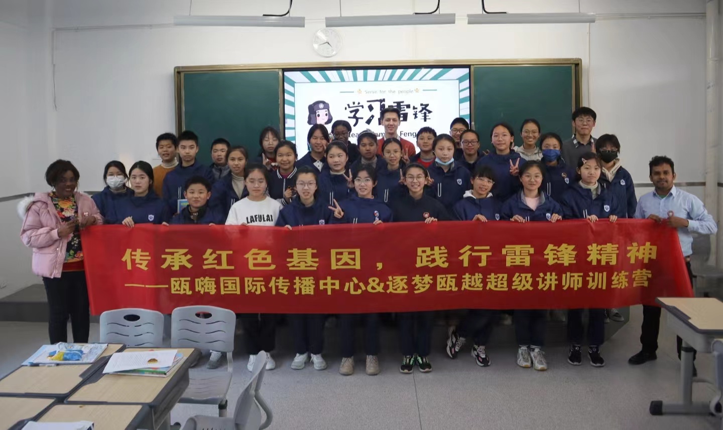 瓯嗨(Ou·Hi)国际传播中心的传播官们为榕园澳门银河官网 的同学上了一堂以“雷锋精神”为主题的双语课。来自英语师范专业的叶哲均同学围绕雷锋的生平事迹、雷锋精神内涵的解读以及当代对于雷锋学习的思考几个方面为同学们上了精彩一课。一同而来的四位留学生也将他们身边的英雄故事娓娓道来。来自乌兹别克斯坦的别克讲述了沙马赫穆多夫在卫国战争期间与妻子收养并抚养了15个不同民族的苏联儿童的故事;来自喀麦隆的明慧讲述了南非国父曼德拉和种族主义坚定作斗争的传奇一生;来自巴勒斯坦的Islam讲述了孟加拉国政治领袖谢赫·穆吉布·拉赫曼终其一生为维护孟加拉民族的利益而斗争的英勇故事;来自莫桑比克的Jan分享了她最好的朋友在生活中给予她温暖帮助的点点滴滴。最后,留学生与榕园澳门银河官网 的同学们一起进行了“雷锋歌曲”游戏互动,跨越语言的障碍,在欢快的氛围中加深对雷锋精神的认识。