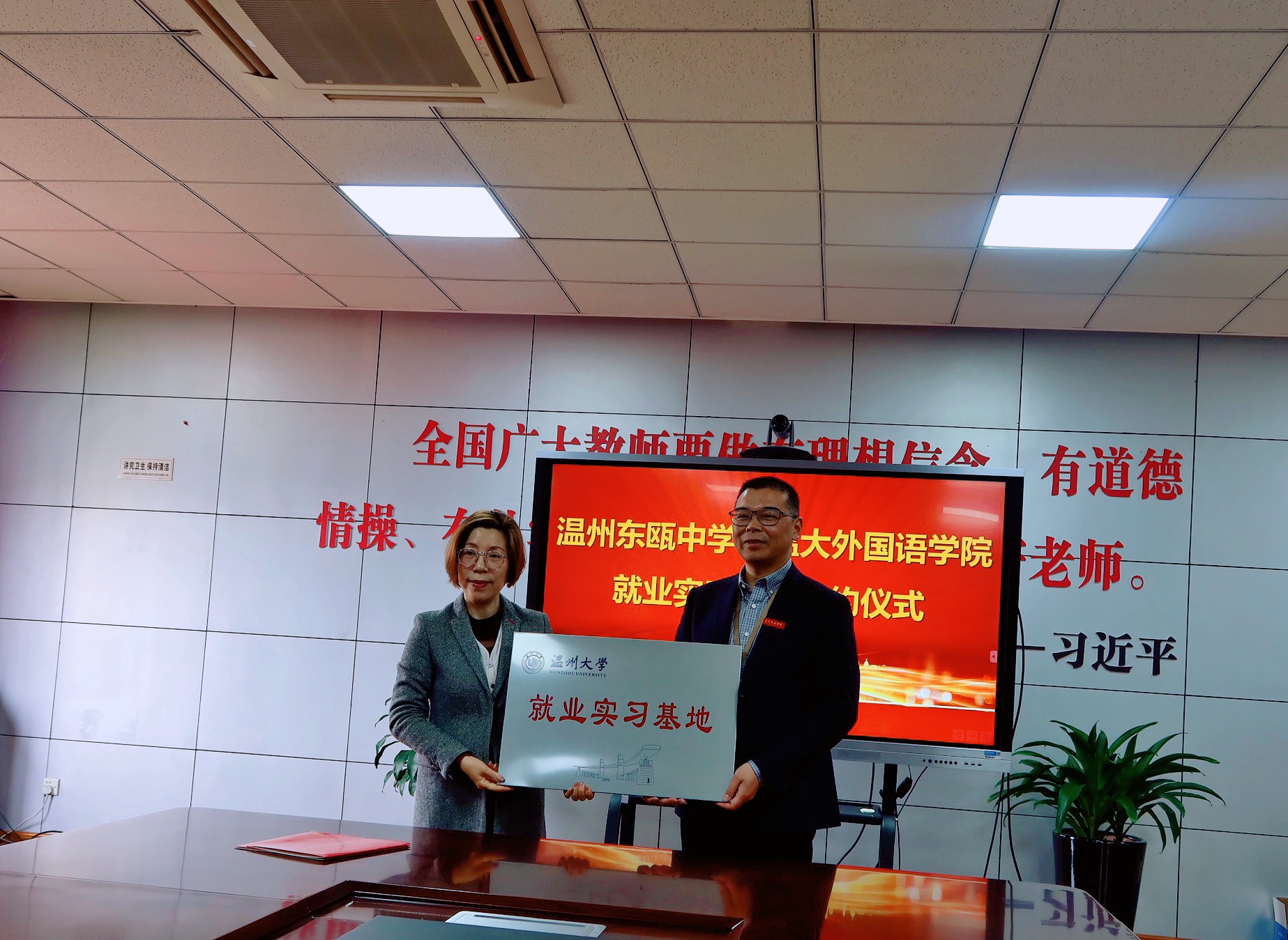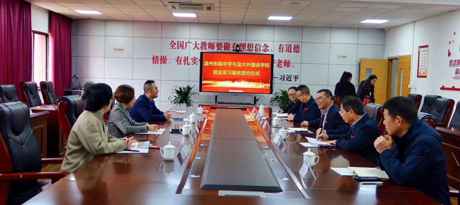 为进一步推进2023届高校毕业生春季促就业攻坚行动,助力毕业生高质量、精准就业,3月31日,澳门银河官网 外国语学院院长叶苗带队走访温州东瓯中学,开展“访企拓岗促就业”活动,助力三名毕业生当场签订就业意向协议书。