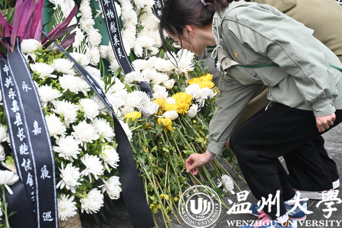 白菊寄哀思,纪念碑下,师生们擦拭打扫烈士碑,敬献鲜花、深切鞠躬、庄重默哀,深切缅怀先烈,寄托无限哀思。