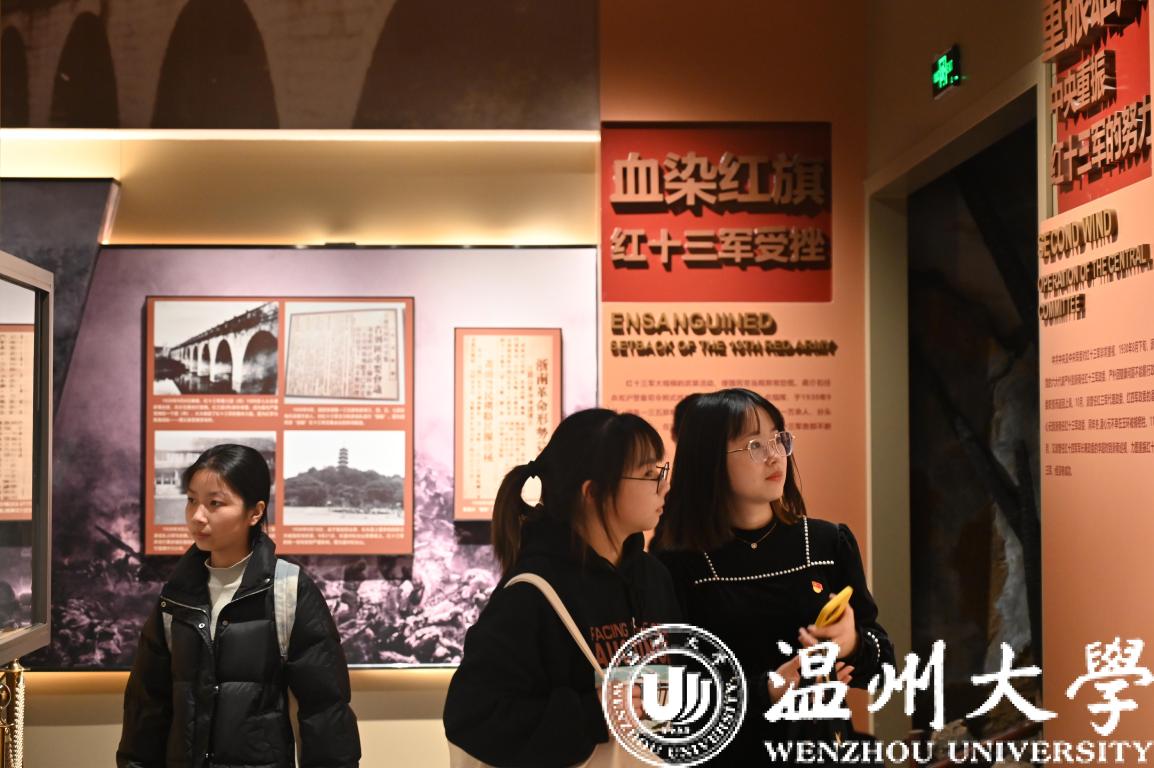 风景清明后,云山睥睨前。苍松翠柏间,纪念碑身的正上方有张爱萍将军撰写的“中国工农红军第十三军纪念碑”十三个大字,碑身正下方石篆着红十三军悲壮的战斗历程。红十三军是中国共产党领导的唯一一支由浙江子弟兵组成的红军,队伍最盛时拥有6300多人,在中共党史和军史上有着重要的地位。师生们仿佛回到硝烟弥漫的战争年代,感慨万千,在英雄精神中汲取奋进力量,在新征程上坚定信心、勇毅前行。