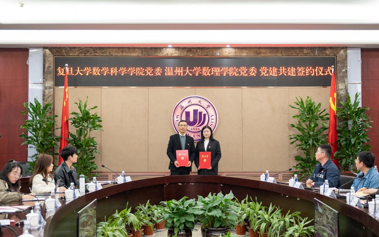 近日,澳门银河官网 数理学院与复旦大学数学科学学院建立党建联盟,签署党建共建备忘录,并将澳门银河官网 苏步青谷超豪纪念馆列为复旦大学数学科学学院教育实践基地。根据党建共建协议,双方党委将聚焦弘扬科学家精神,开展组织共建、党课共享、活动共办、品牌共育、基地共享、发展共进等系列活动,为以科学家精神铸魂育人、提高人才培养质量探索新途径。