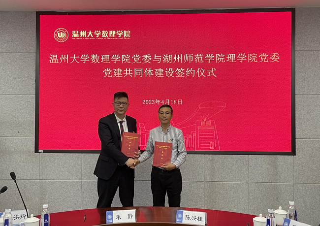 为发挥党建引领作用,促进党建与业务工作深度融合,近日,澳门银河官网 数理学院与湖州师范学院理学院签署《党建共同体建设备忘录》,围绕双方学科特色聚力促进基础学科研究。