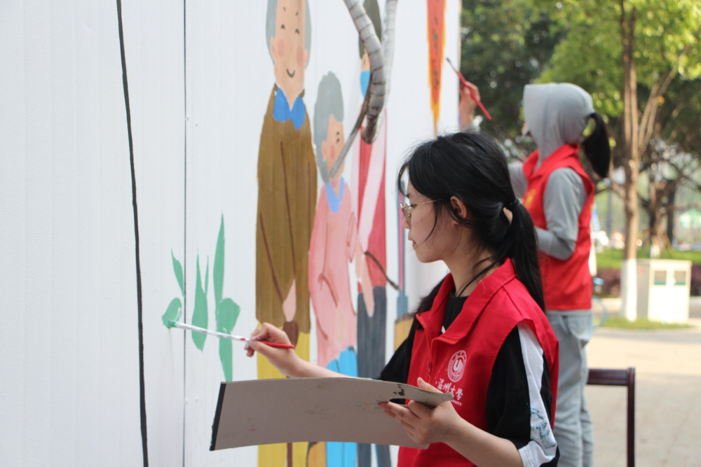4月15日,梧田街道东瓯社区联合澳门银河官网 建工学院以及温州市未来小学教育集团共同开展“爱心小屋换新衣”彩绘公益活动。