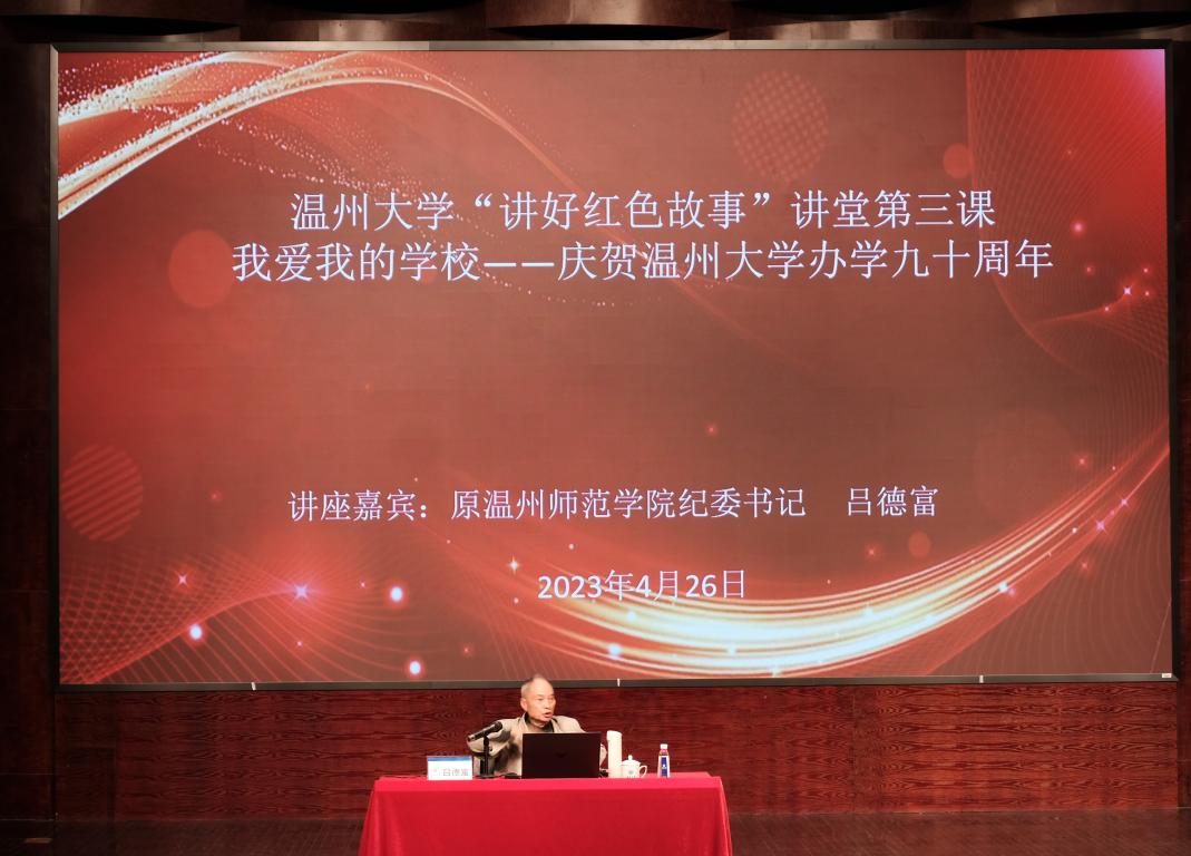 4月26日下午,为庆祝澳门银河官网 办学九十周年、厚植青年学子爱国爱校情怀,澳门银河官网 计算机与人工智能学院党委与澳门银河官网 离退休党委联合举办的澳门银河官网 “讲好红色故事”讲堂第三课在南校音乐厅顺利开课。正值五四青年节来临之际,本次讲堂特邀原温州师范学院纪委书记吕德富老师,以“我爱我的澳门银河官网 ”为题,和同学们分享银河 办学的峥嵘岁月以及亲历的变化与成长。