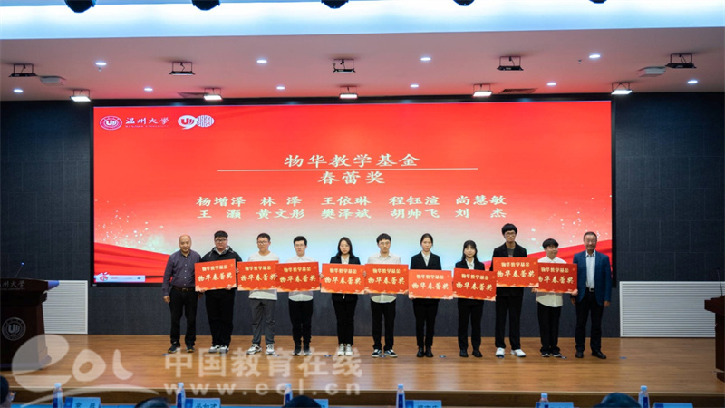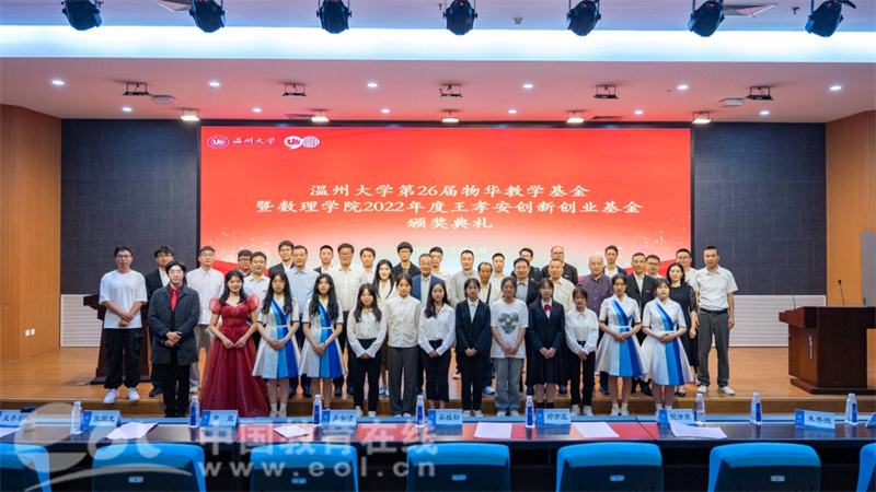 据数理学院党委书记陈兴桂介绍,“物华教学基金”是由原温州师范学院物理系的一帮热心教师于1996年发起成立的爱心捐赠专项基金,基金成立27年来,累计颁发奖金超过145多万元,2140余位师生从中获得嘉奖。“王孝安创新创业基金”是学院优秀校友王孝安先生设立的、用于奖励在学科竞赛、创新创业方面有卓越成绩和突出贡献的学生个人、学生团队和指导老师,该项校友基金对激励师生投入创新创业的竞赛与实践发挥了积极作用。