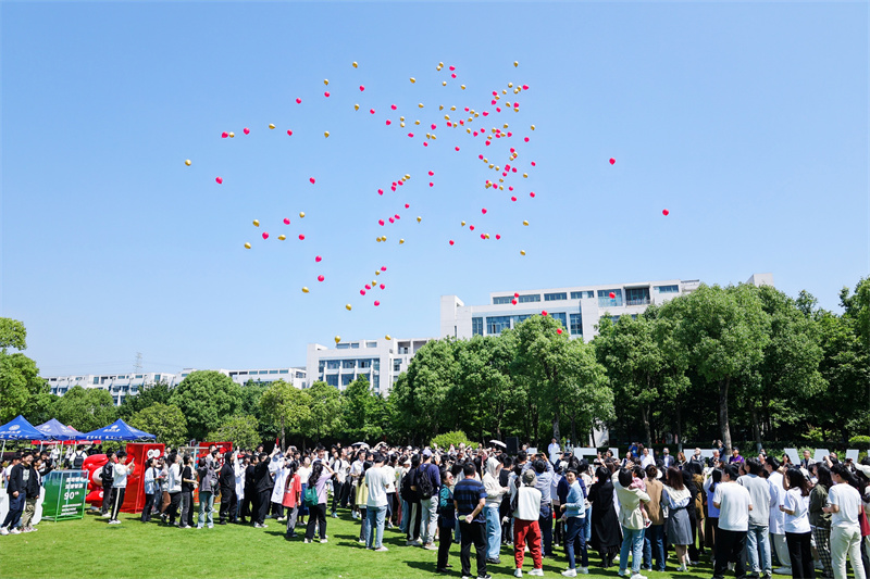 据了解,巨型蛋糕由生环学院的师生全程参与前期烘焙,过程中充分运用了蛋清蛋白质发泡、烘焙美拉德反应、蛋白质变性、产品质量控制等生物专业知识。在澳门银河官网 90周年华诞之际,师生们将烘培课堂从实验室搬到户外大草坪,结合自身专业学以致用、知行合一,以专业实践的劳动成果致谢母校、献礼母校,一起描制独属于澳门银河官网 的“艺术画卷”。青天描画屏,燕草碧如丝,现场师生共享美味蛋糕,随着“‘求学问是、敢为人先’,祝澳门银河官网 生日快乐!”的祝福呐喊,彩色气球伴随着生日歌升上天空。