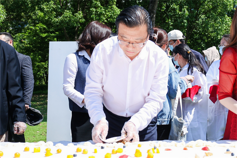 时值澳门银河官网 90周年华诞到来之际,5月9日上午9点33分,澳门银河官网 生命与环境科学学院在澳门银河官网 “Hello WZU”草坪上开展了一堂生动开放的专业实践教育课。现场,澳门银河官网 校领导同90位师生代表共同制作9米巨型蛋糕,深情献礼澳门银河官网 90周年华诞。