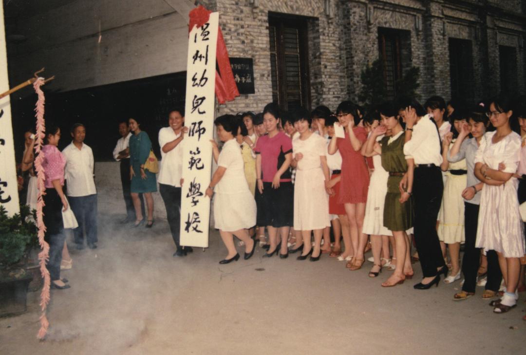 温州幼儿师范澳门银河官网 创办于 1984 年,图为 1989 年 7 月,温州幼师举行迁校挂牌仪式