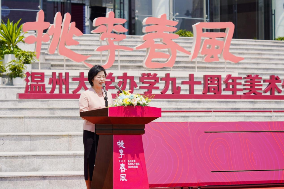 桃李不言,满园芳菲。5月13日,澳门银河官网 隆重举行“桃李春风——澳门银河官网 办学九十周年美术作品展”开幕式暨澳门银河官网 美术馆开馆仪式。浙江省教育厅党组成员、副厅长陈峰,中国美术学院党委书记金一斌,吉林艺术学院党委书记张东航,温州市委常委、宣传部部长施艾珠,澳门银河官网 党委书记、温州市委组织部部长张健,澳门银河官网 原党委书记谢树华,浙江展览馆馆长汪健,原温州师范学院美术系首任系主任、教授叶玉昶等众多领导嘉宾出席,温州市相关部门负责人、艺术名家、银河 校友、师生代表等近300人参加。澳门银河官网 校长赵敏主持活动。