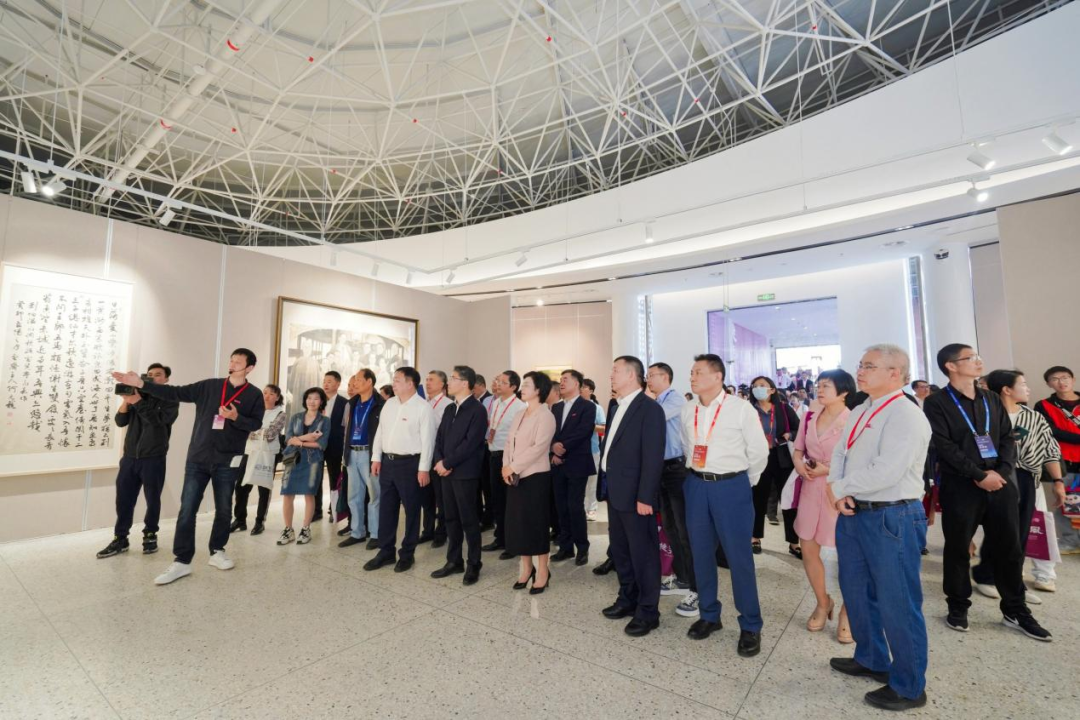 最后,陈峰、金一斌、张东航、施艾珠、张健、赵敏、谢树华、汪健、叶玉昶等领导嘉宾共同为“桃李春风-澳门银河官网 办学90周年美术作品展”开幕。