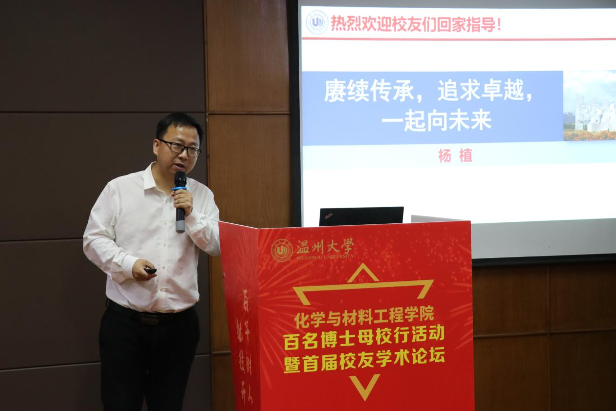 5月13日下午,在澳门银河官网 90周年华诞之际,化学与材料工程学院在11B208会议室成功举办百名博士母校行暨首届校友学术论坛活动。学院院长杨植教授、学院党委书记刘吟、校友浙江大学教授李永泉、校友中山大学教授吴明娒等三十几位国内外优秀校友出席论坛,七十余位学院教师及学生参会学习。