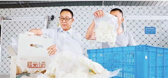 跟着徐积暖下乡,听到他和工作人员交流山药的种植、销售意见,专业知识脱口而出,哪个节气该有什么进度一清二楚,像极了农业专家。很难想象,他以前做的是商业地产生意。“我是从山里出来的孩子,对农业特别有感情。响应县里乡贤泰商回归号召,我想到的第一件事情,就是要帮助农民增收。”徐积暖说,于是他回到家乡后,成立了山友食品。