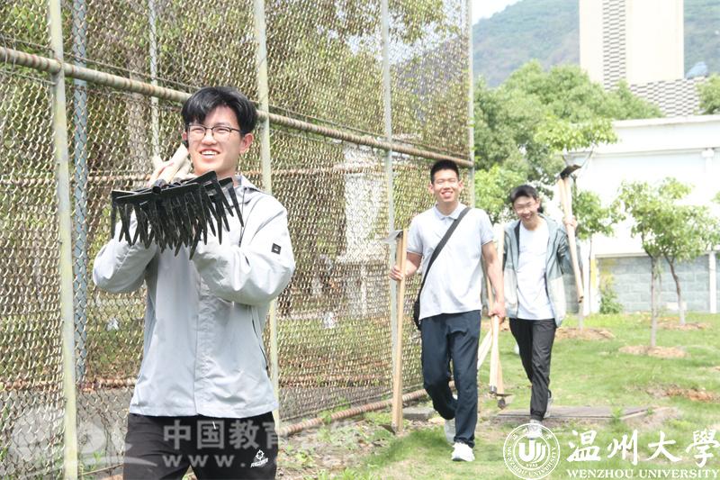 随后,学院党委书记何毅、党委副书记章园园以及金建钰老师带头挥下第一锄,同学们的劳动实践活动正式开始。大家热情高涨,分配职责,互相帮助。运输、除草、翻土、掘坑……炎热的天气让同学们大汗淋漓,但能够亲身体验劳动实践带来的快乐,可以抵去万千酸痛。