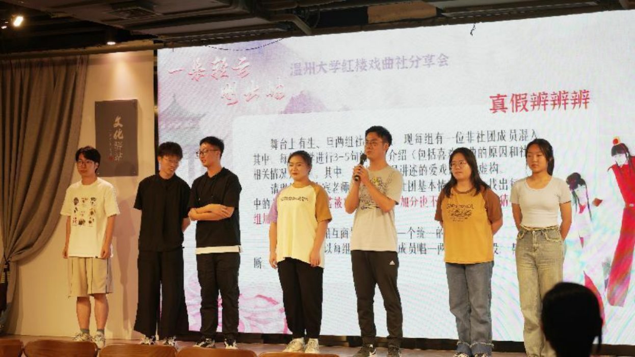 文苑文化驿站背靠温州市越剧院为优势,是全市众多文化驿站中唯一一个以“把戏说给你听”为活动特色的驿站。本场活动的策划人、温州市越剧院工作人员清言介绍,以往的推广活动以“我讲你听”的讲座形式为主。本次分享会面向大学生,所以效仿了“综艺节目”的形式,把温越历史、戏曲知识、南戏文化等融入游戏中,让大学生能在玩中学、学中玩。