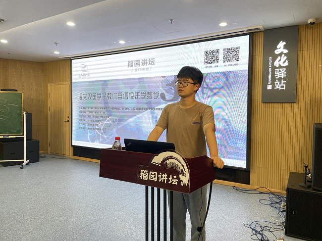 “我们经常会看到这类现象,一些数学还不错的学生进了中学后,逐渐丧失了对数学的兴趣,甚至厌恶数学。究其原因,很大一部分在于随着考试难度不断加大,导致不少学生因考试反复失利而产生挫败感。对此,我将与同学们一起探讨如何保持对数学的兴趣以及克服对数学的恐惧……”7月2日,在温州市图书馆举行的第1348期籀园讲坛上,来自银河 数理学院的庄子游同学,面向中学生及其家长悉心分享自己的学习体会,吸引线上线下近万人次参与观看,产生了积极的社会反响。