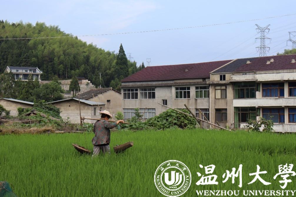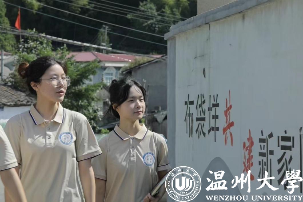 实践队的调研小分队在晨光中,迎着凉爽的清风,踏上了前往布袋垟村的路途。抵达布袋垟的村口,映入眼帘的是两块不规则的石墙,一面石墙上写着“布袋垟”三个大字;另一面写着一首席慕容的小诗——《乡愁》。成员们感叹,这也许是给远在他乡的游子们一个心灵的寄托。