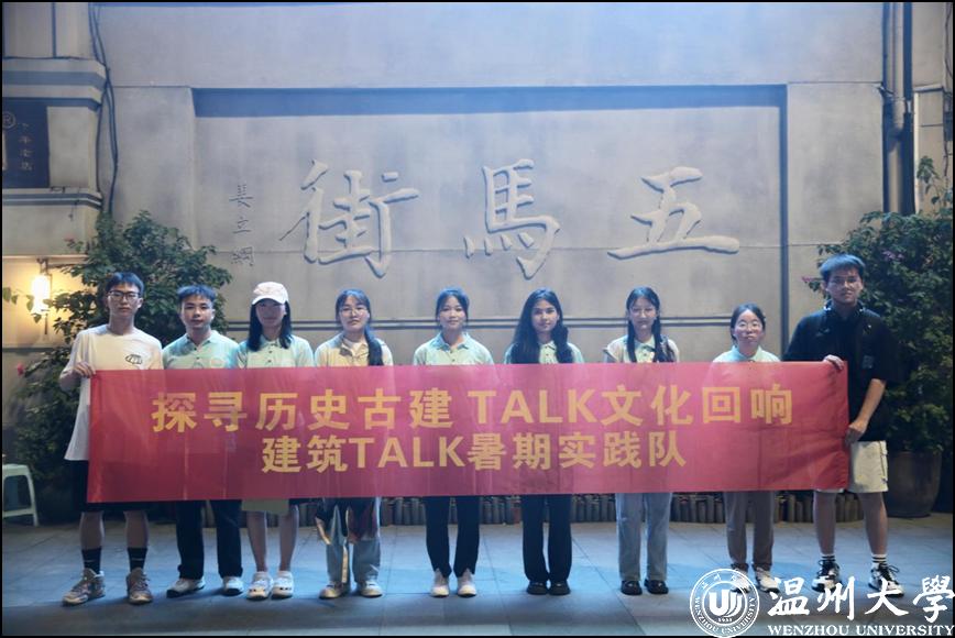 在五马街,澳门银河官网 暑期实践队找寻着历史古建、传统文化载体和体现温州乡土人情的建筑,他们穿梭在城市的大街小巷,记录和学习传统建筑的造型和原理。“大家看这里,这五匹扬蹄飞奔的骏马雕像就是五马街名字的由来,青铜工艺效果和汉唐造型艺术风格透露着深厚的历史底蕴,雕塑的基座以桥为设计起点,配置以喷泉流水,突出温州水乡特色。”