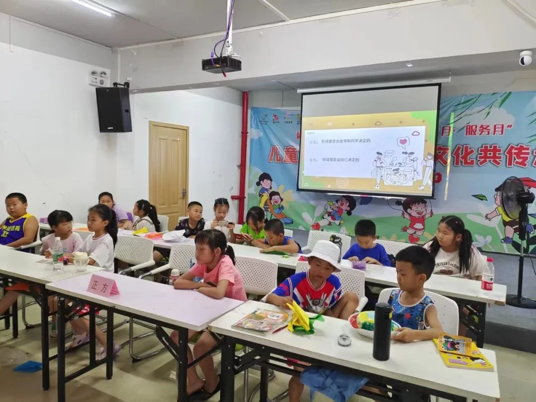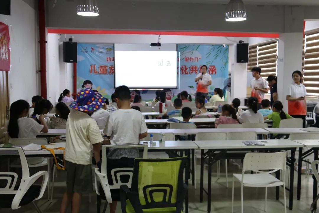 7月19日上午,企业社区联合澳门银河官网 “爱的历程”暑期实践队开展辩论课程和国画课程,共计40名未成年人参加。
