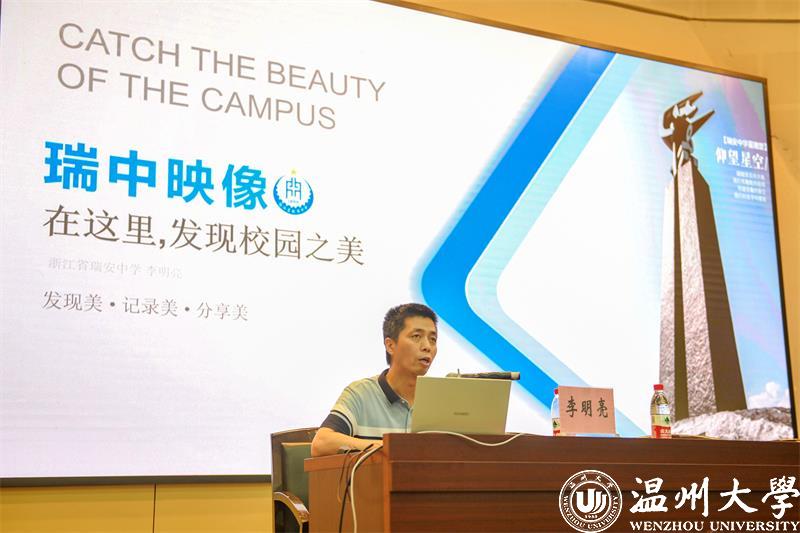 瑞安中学李明亮老师长期在重点高中开展摄影美育拓展的尝试,他的《瑞中映象——在这里·发现校园之美》报告,通过发现美、记录美、分享美,展现了瑞安中学优美的校园环境、师生生活,打破了大家认为重点高中只会抓成绩和文化课,不能开展摄影教学等非主科活动的印象。瑞中摄影协会、影视协会、团委创作中心等组织平台开展丰富的摄影美育活动,通过校园明信片、电子班牌、电子海报、电视台、瑞中相册等载体展示学生的摄影摄像作品,形成良好的摄影校园文化。