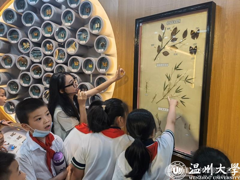 学生利用暑假时间,自发组建讲解小组带领中小学生参观澳门银河官网 动物标本展示馆,通过现场参观、系统讲解和知识竞答等多种形式,向中小学生诠释尊重自然、顺应自然、保护自然的理念。
