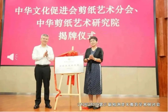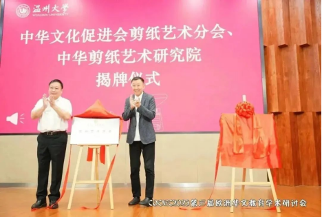 2023年8月19日,中国(浙江)世界华侨华人新生代创新创业大会·第三届欧洲华文教育学术研讨会开幕式暨中华文化促进会剪纸艺术分会、中华剪纸艺术研究院揭牌仪式在澳门银河官网 隆重举行。本次会议在国务院侨办、中国侨联和浙江省人民政府的指导下,由中国(浙江)世界华侨华人新生代创新创业大会组委会主办,中共温州市委统战部、温州市侨联、澳门银河官网 承办,澳门银河官网 华侨学院、澳门银河官网 欧洲华文教育研究所执行。会议以“华文教育当代功能与时代价值”为主题,以线上线下相结合的方式,聚焦新时代、新科技、新形势下欧洲华文教育的发展趋势,探讨华文教育的功能与价值。