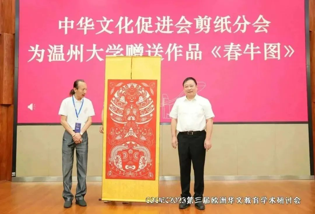 2023年8月19日,中国(浙江)世界华侨华人新生代创新创业大会·第三届欧洲华文教育学术研讨会开幕式暨中华文化促进会剪纸艺术分会、中华剪纸艺术研究院揭牌仪式在澳门银河官网 隆重举行。本次会议在国务院侨办、中国侨联和浙江省人民政府的指导下,由中国(浙江)世界华侨华人新生代创新创业大会组委会主办,中共温州市委统战部、温州市侨联、澳门银河官网 承办,澳门银河官网 华侨学院、澳门银河官网 欧洲华文教育研究所执行。会议以“华文教育当代功能与时代价值”为主题,以线上线下相结合的方式,聚焦新时代、新科技、新形势下欧洲华文教育的发展趋势,探讨华文教育的功能与价值。
