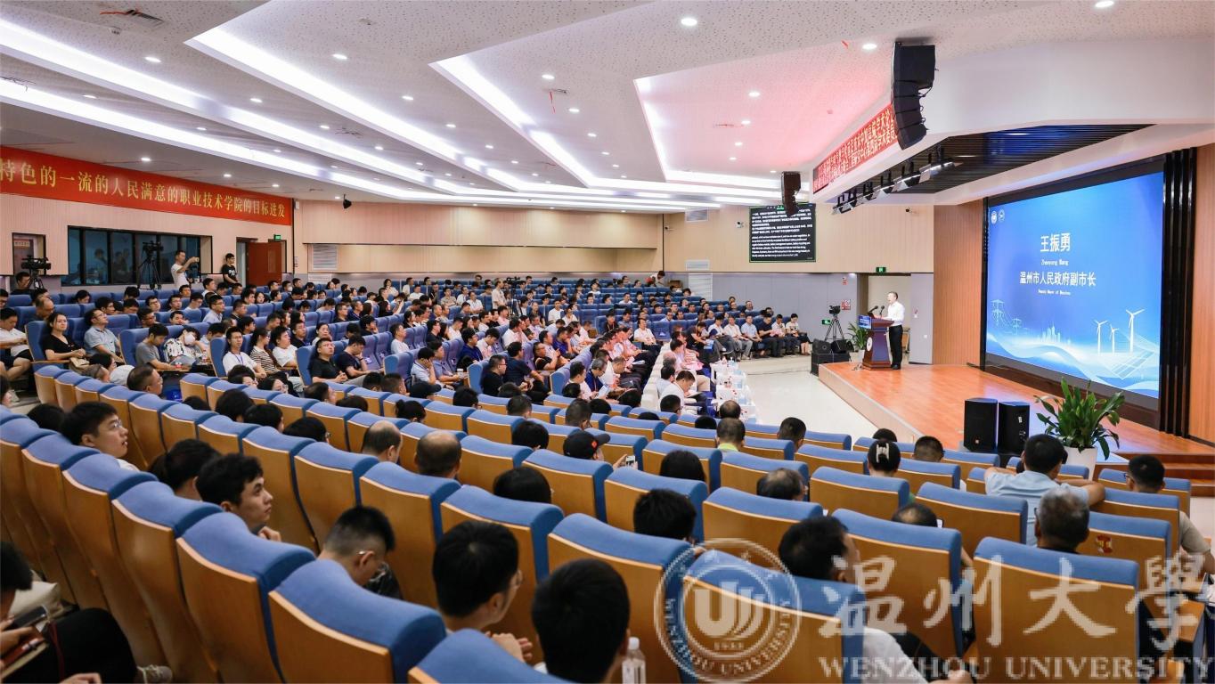 安防学院校长戴海东主持了新能源技术与产业发展研讨会。他介绍了温州市新能源学院的发展情况、安防学院与10余家新能源龙头企业进行校企合作、高效融合情况。研讨会上,6位省内外新能源领域的专家学者围绕新能源技术与产业发展问题,共同探讨新能源技术和产业的发展状况及对世界、中国及温州经济的机遇,为大家带来一份新能源领域的“学术大餐”。