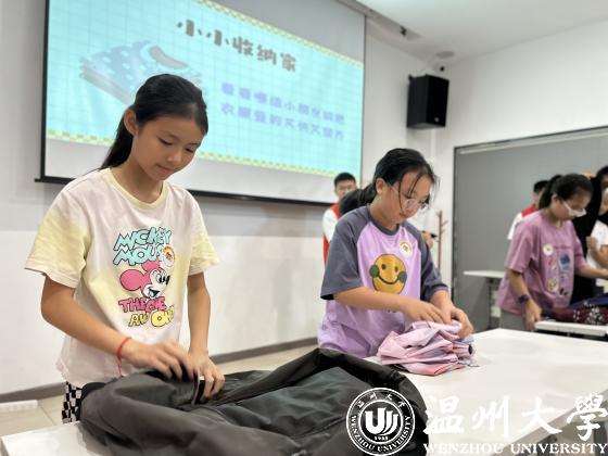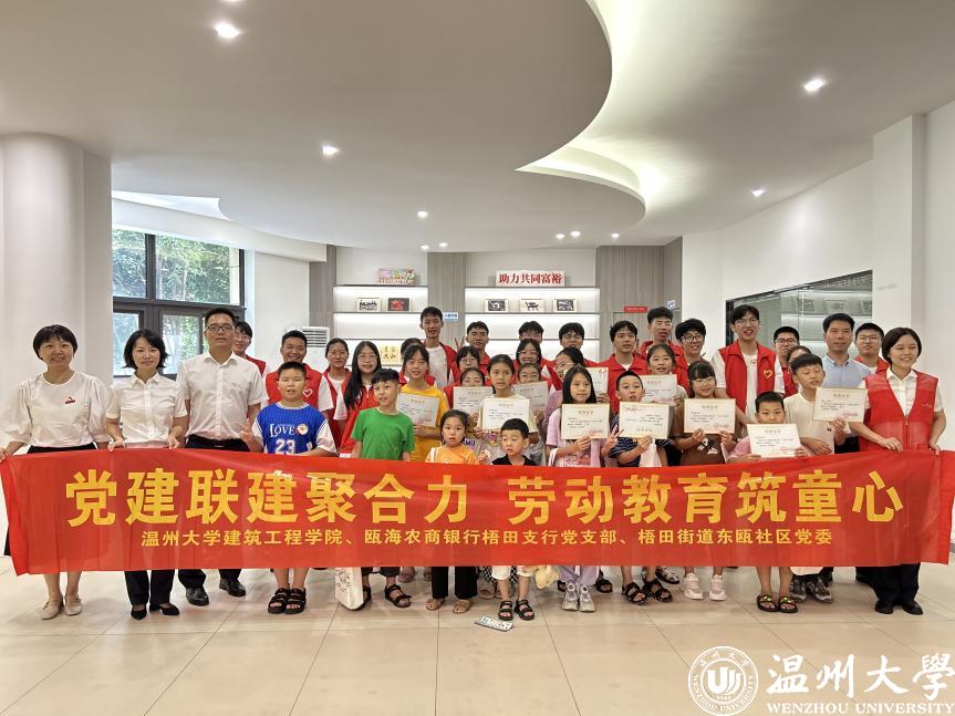 近日,澳门银河官网 建筑工程学院暑期实践队走进东瓯社区,开展“劳动筑童心”主题活动。实践队依托“共享社·幸福里”平台,结合生活实践经验,通过“农夫挑水记”“小小收纳家”“书本回家记”“进桶吧!垃圾”“跳舞的鞋带”等趣味游戏锻炼孩子们的劳动能力和自理能力,让孩子们体会劳动的快乐,在劳动中寻找获得感和成就感。