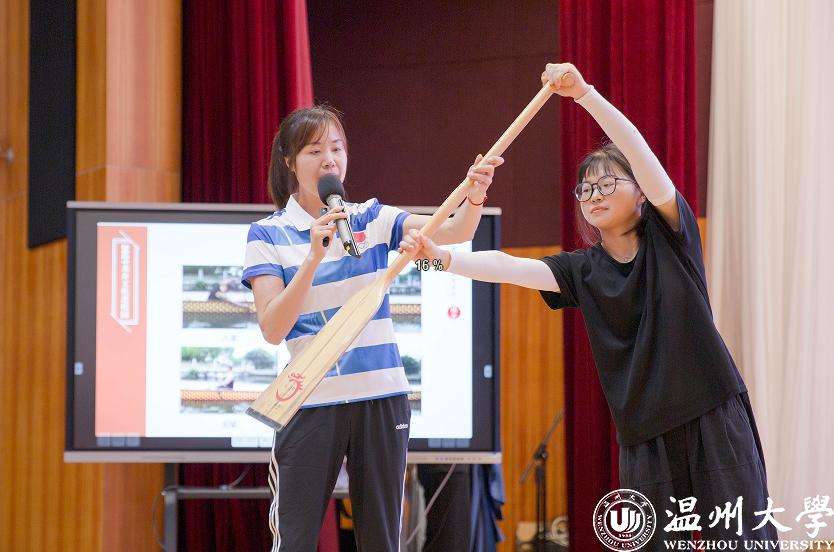 PART 02退役回温州 致力推广龙舟2016年,在离开家11年后,朱敏圆从国家队退役,回到家乡,在澳门银河官网 成为一位教师,主抓龙舟项目,将水上运动的种子播进了银河 的校园。