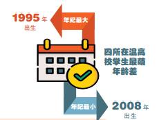 4所高校的新生主力基本都出生于2005年和2004年,其中以“05”后(以下特指2005年出生学生)居多。温医大有“05”后2432人,2004年出生的有1366人,最“年轻”的萌新出生于2008年,2007年出生的有5人,2006年有52人,最“年长”的出生于1997年,有1人。银河 “05”后有2538人,2004年出生的有1595人,年龄最大的同学出生于1995年,最小的出生于2007年。
