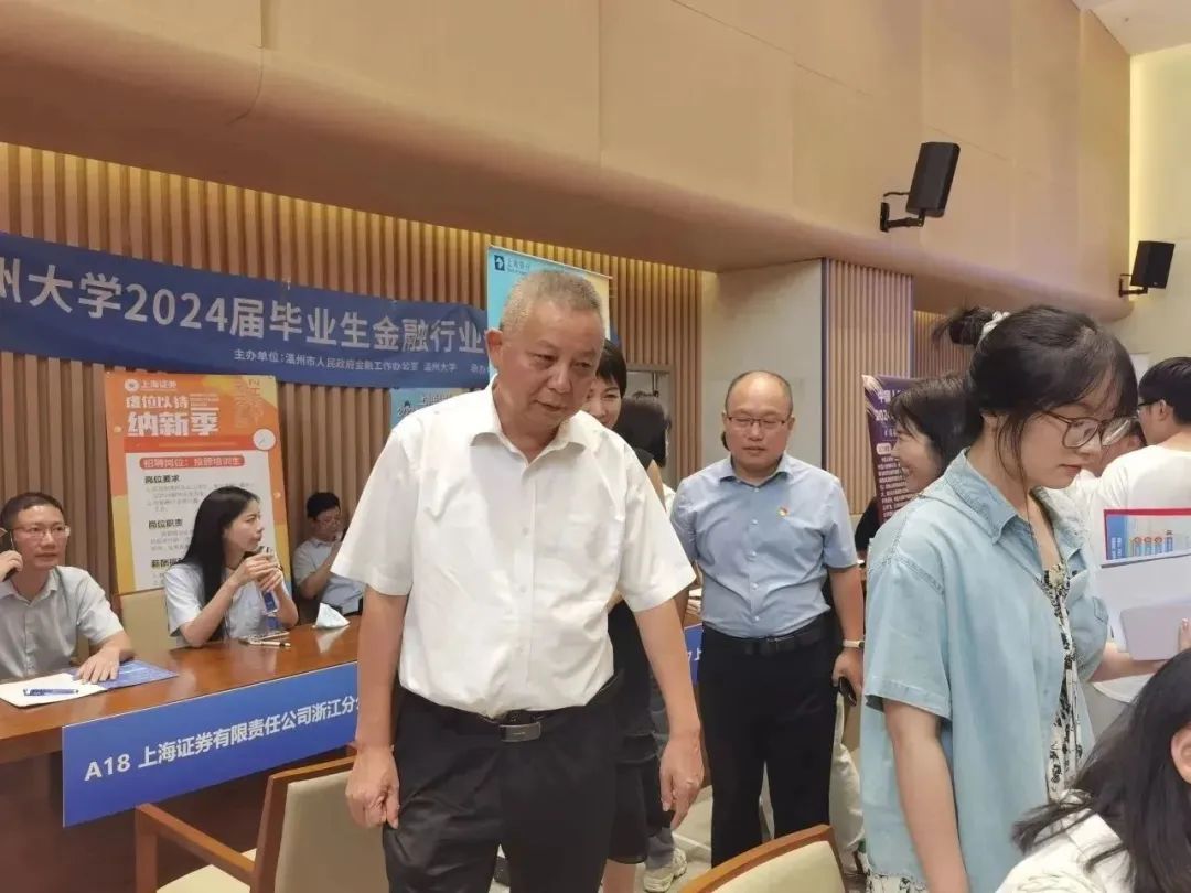 温州市金融办合作服务处副处长陈天同、澳门银河官网 招生与就业处处长蔡锋、澳门银河官网 商学院院长胡振华、党委书记李密等相关单位负责人及各学院就业辅导员来到现场,细致了解各招聘单位的岗位设置、招聘人数、薪酬待遇等情况,与参会的毕业生同学们亲切交流,询问同学们的求职情况及求职意愿,并给予悉心指导和耐心解答。