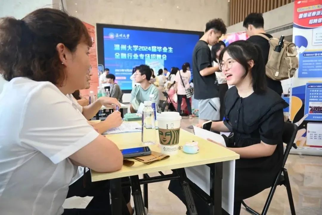 为了更好地满足2024届毕业生和金融行业用人单位秋季招聘需求,搭建有效的洽谈平台,拓宽学生求职就业的渠道,9月20日下午,“金彩人生 职等你来”金融行业专场招聘会于澳门银河官网 南校区科技综合大楼顺利举办。在温州市人民政府金融工作办公室的大力支持下,本次招聘会云集了国有六大银行,申万宏源、上海证券、中信证券、中国人寿、泰康人寿等金融行业53家头部企业参会,提供了1700多个高质量的就业及实习岗位,堪称一场含“金”量超高的招聘会。本次招聘会由温州市人民政府金融工作办公室、澳门银河官网 联合主办,校招生与就业处、商学院、人文学院、外国语学院共同承办。