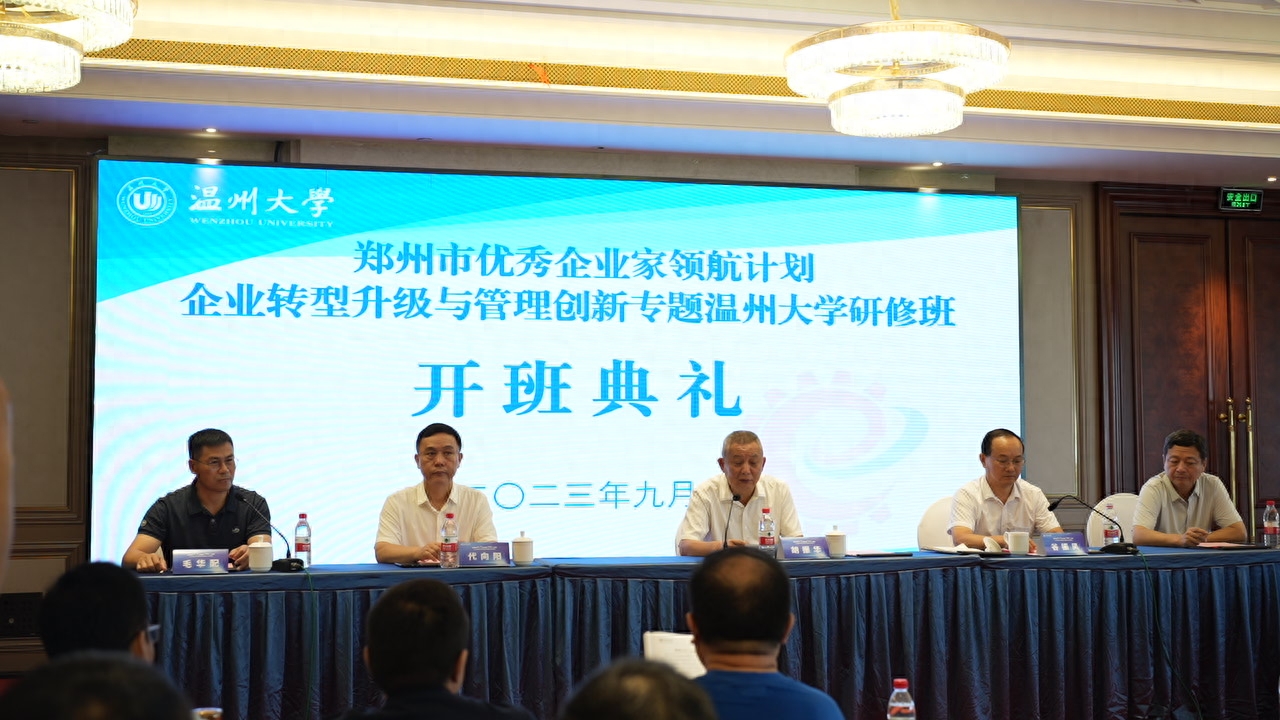 2023年9月10日至16日,由郑州市工业和信息化局举办的郑州市优秀企业家领航计划——企业转型升级与管理创新澳门银河官网 研修班,在民营经济发祥地温州成功举办。澳门银河官网 商学院院长胡振华致欢迎词,澳门银河官网 教授毛华配主持开班仪式,郑州市工业和信息化局党组成员、副局长谷振风出席开班仪式并作动员讲话、党组成员、一级调研员代向阳、郑州市政府办公厅二级调研员袁希刚出席开班仪式,各区县(市)工信部门负责人、领航计划企业家等208人参加培训。