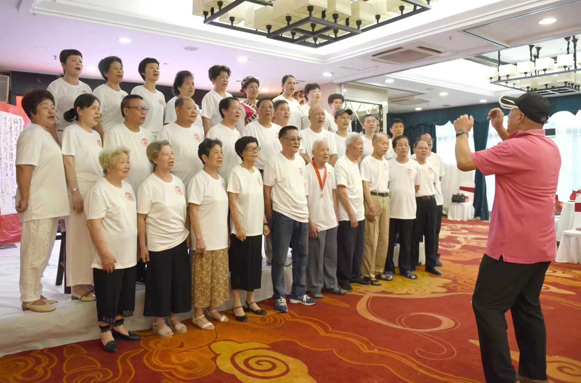 花,向他们表示祝贺;齐唱《没有共产党就没有新中国》《团结就是力量》等红歌,表达老同志对党的热爱和永远跟党走的决心。