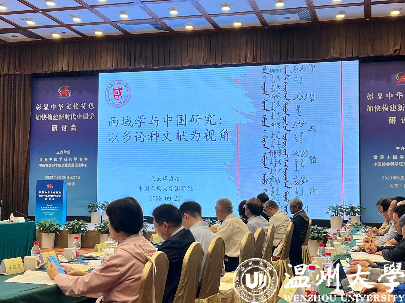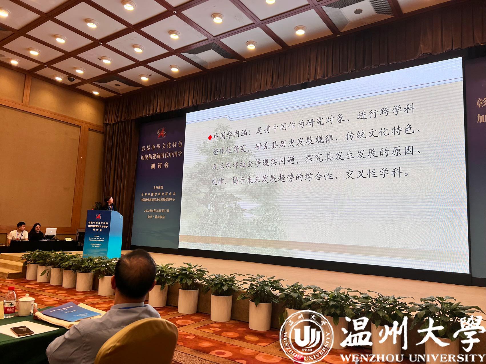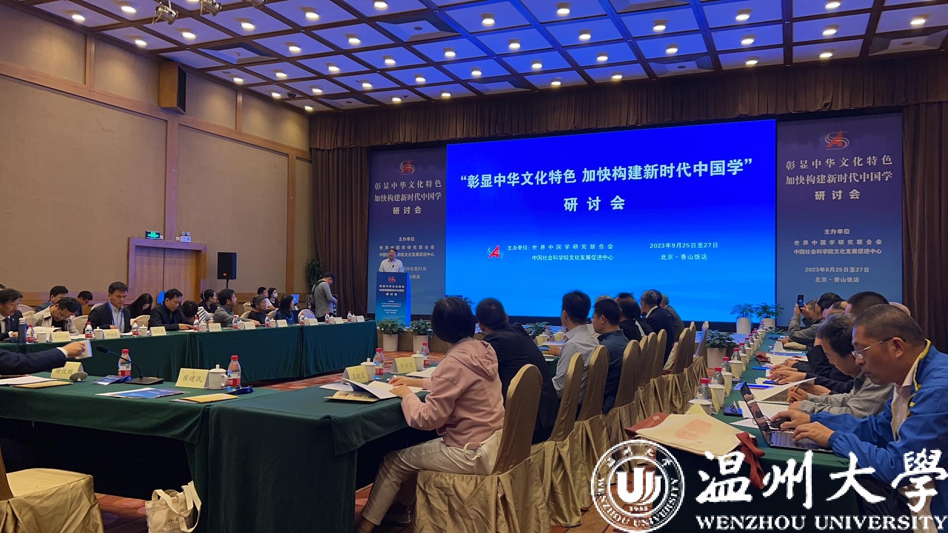 9月25日-27日,由世界中国学研究联合会、中国社科院文化发展促进中心联合主办的“彰显中华文化特色 加快构建新时代中国学”研讨会在北京举行,来自全国各地的80多名相关专家学者与会。温州市社科联和澳门银河官网 温州学研究院受邀参会。