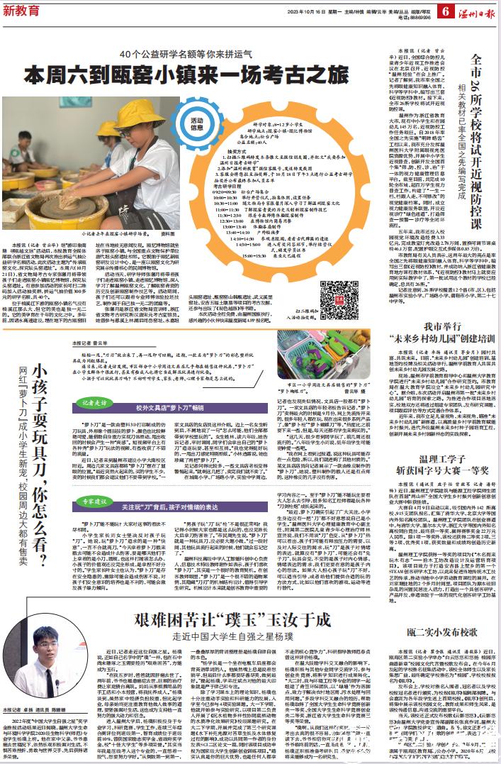 近年来,我市立足儿童视角、未来视角,瞄准“未来乡村幼儿园”新赛道,以高质量乡村学前教育赋能乡村振兴,迭代升级温州未来乡村种子园培育工程,创新开展未来乡村园新样态的实践探索。