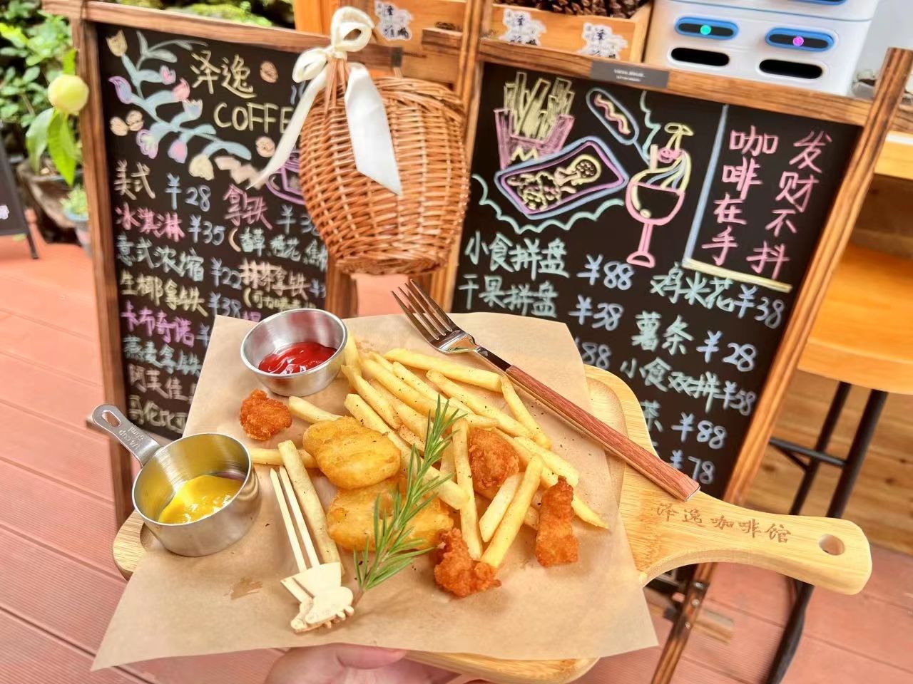 “创办咖啡馆一开始只是想为游客和周边民宿的住客服务的,但没想到开业后生意非常火爆”,刚开业的泽逸咖啡馆,不仅吸引了大批前来景区游玩的年轻人,也有不少中老年村民来店喝茶叙旧,因此目前咖啡馆还保留着各类茶水的供应。今年五一期间,泽逸咖啡馆累计卖出了1000多杯咖啡,5月1日当天,营业额更是突破万元。