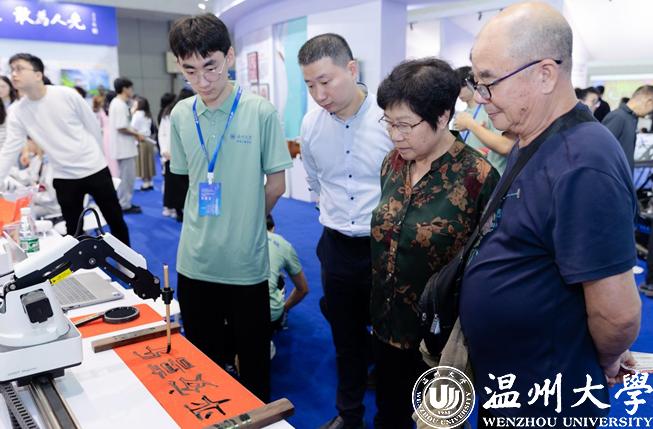 “快看!那个机器人会用毛笔写字,还有个机器人会下棋!”“哇,这辆赛车好酷!”……机电工程学院师生自主研发的魔术师书法机器人、Robocon投环机器人和疾风车队赛车,计算机与人工智能学院研发的动作捕捉系统,澳门银河官网 元宇宙与人工智能研究院研发的VR展示-温州朔门古港及宋代园林和下棋机器人等作品科技感满满,吸引了众多市民参与体验。