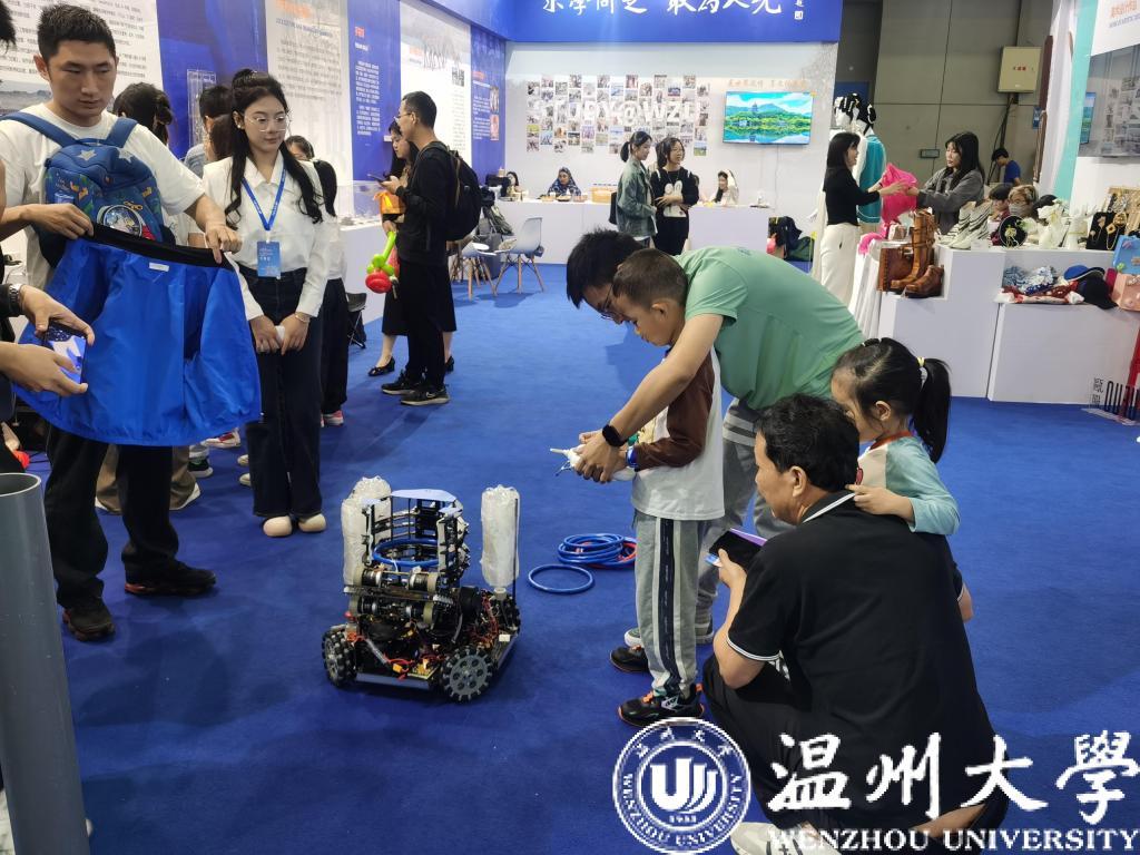 10月29日是2023第十届温州国际时尚文化产业博览会开展第三日。正值周日上午,天气晴好,国际会展中心内满是家长带着小朋友来参观展览,文博会成了个“亲子乐园”。