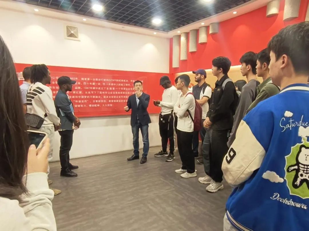 在振中机械的非公党建主题展览厅里,同学们在讲解员的讲述中了解到,1987年振中成立了浙江省第一个民营企业党支部,扬起了非公企业飘扬的第一面红旗,自此写下了温州非公企业党建探索实践之路的开篇一笔。近年来随着非公党建和中国梦的不断融合,激发出促进企业可持续发展的正能量,挖掘新业态新就业群体党建,为深入贯彻落实习近平总书记重要指示批示精神,切实加强党对新兴领域的领导,2021年,瑞安市加强对重点互联网企业的政治领导,织密组织网、筑牢阵地网、拉好服务网,着力组织共跑,助力“共富工坊”。